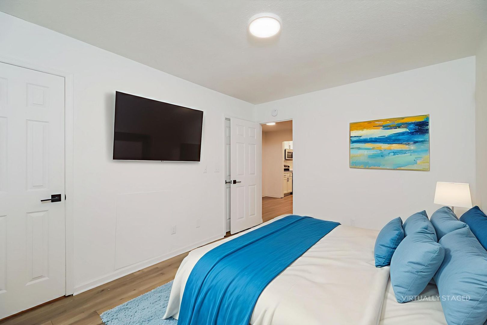 With entrances to the bathroom from both the dining area and bedroom, this unit offers maximum privacy and convenience. The bedroom is spacious enough to comfortably fit a queen size bed and full dress set, and includes a walk-in closet for all your storage needs.